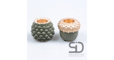 Candleholder, acorn, cement, 2 pieces, 9x9x7.5 cm, olive green.