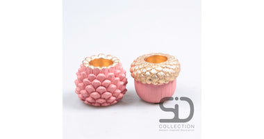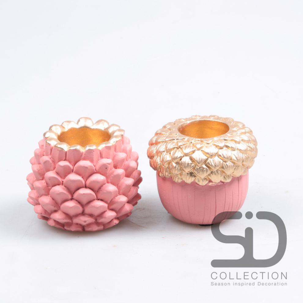 Candlestick, acorn, cement, 2 pieces, 9x9x7.5 cm, old rose.