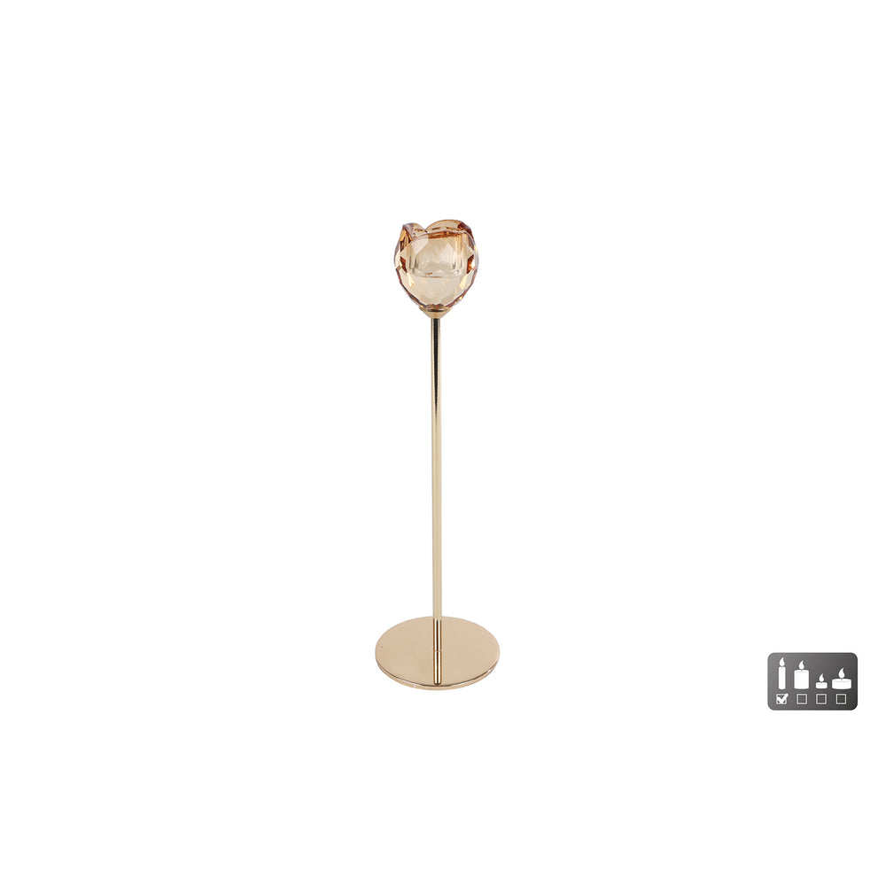 Candlestick "Jackie" L amber metal/glass 8x8x28cm