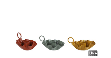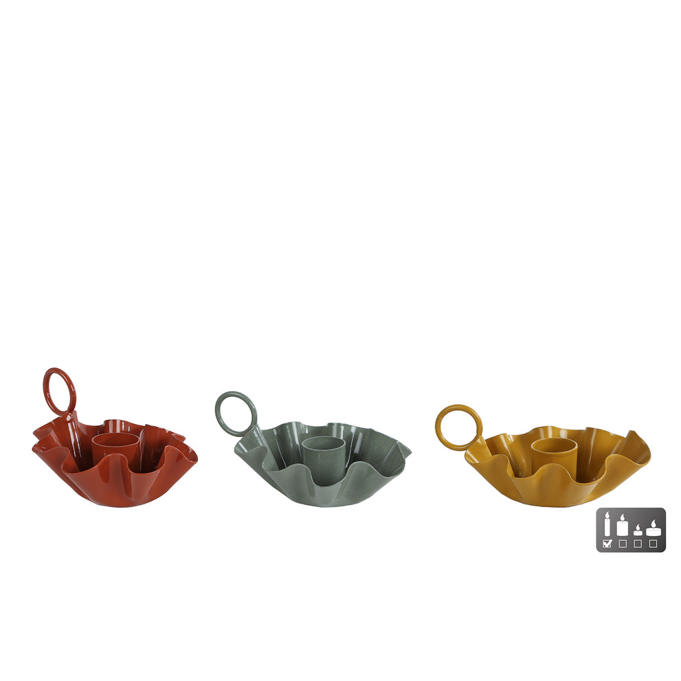 Candlestick "Naomi" red/green/mustard 3 assorted metal 11x8.5x5cm