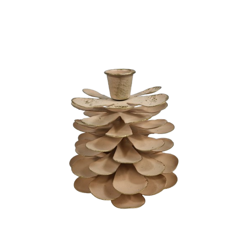 Candlestick "Pinecone" L beige metal 11x11x12cm