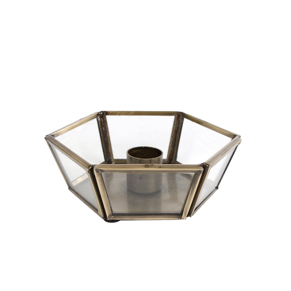 Candlestick "Stephanie" old gold glass/aluminum 11x12x4cm