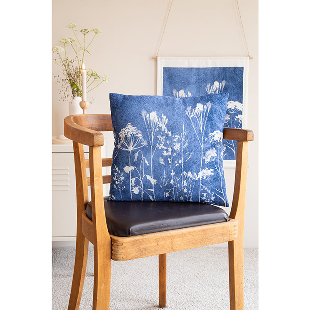 Cotton cushion "Blue Print" 40x40cm washed denim blue