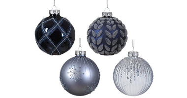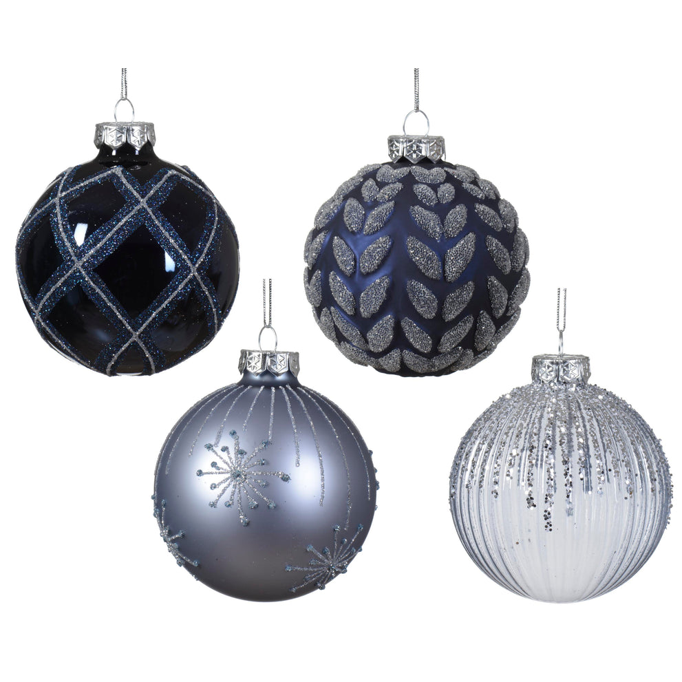 Christmas ball glass 4 assorted blue/color(s) D.8cm