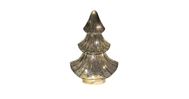 Glass Christmas Tree, 10 LEDs, 3 x AAA batteries, with timer, 15.5 x 9.5 x 24 cm, grey.