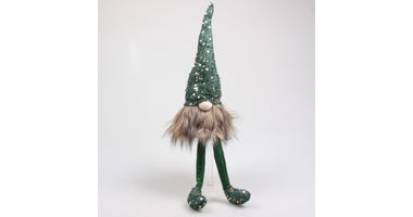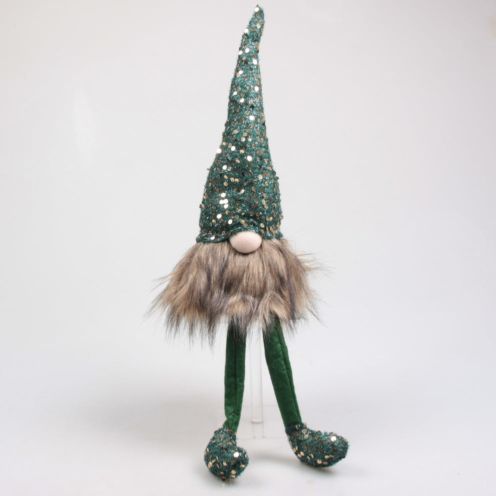 CHRISTMAS ELF WITH SEQUINS AND HANGING LEGS 12X10X42 CM GREEN