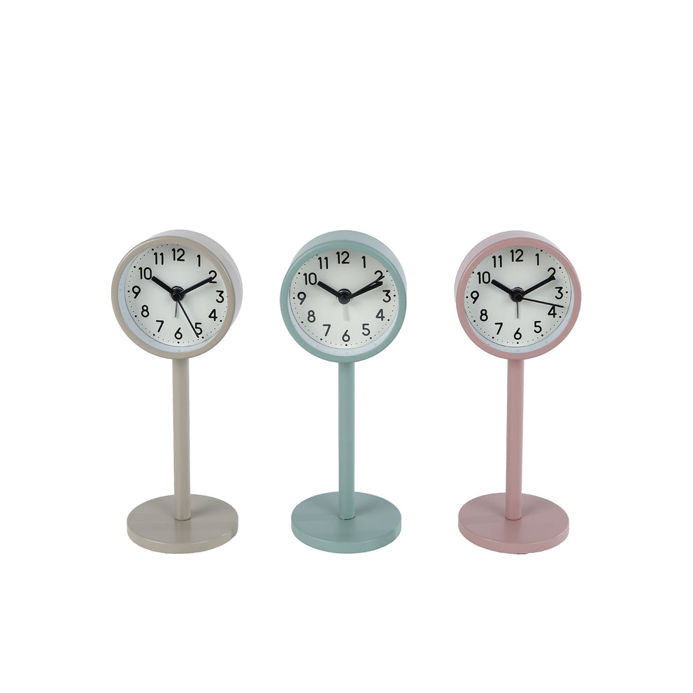 Clock "Rikki" S pink/green/beige 3 assorted metal 1xLR44 5x5x14cm