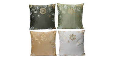 Polyester snowflake cushion, 4 assorted, 45x45x4cm