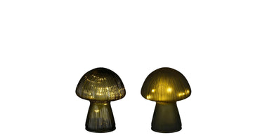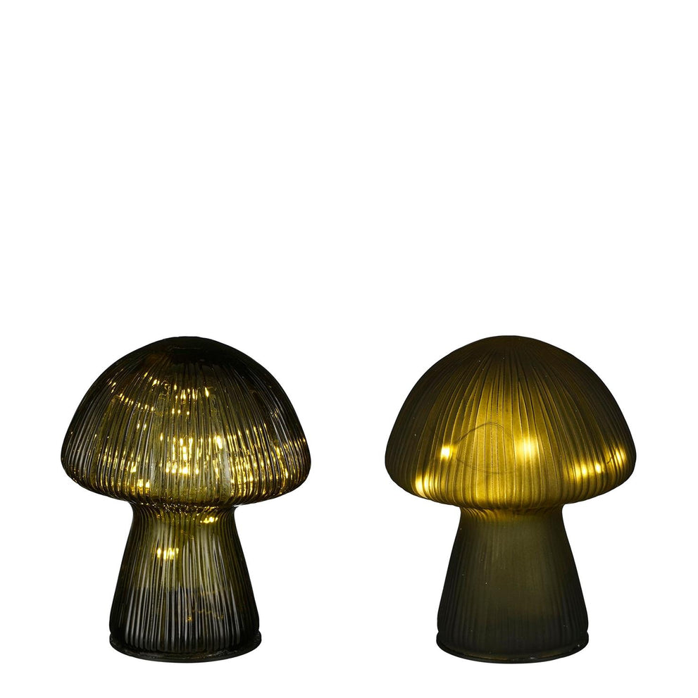 Mushroom lamp, glass, green, 2 ass, 10 led, battery - h15xd12cm