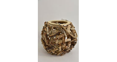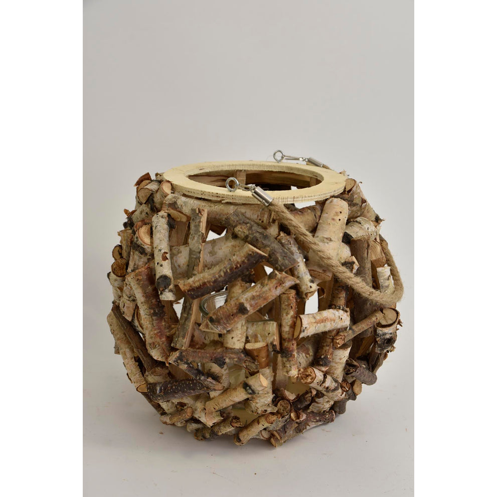 Birch lantern L with jute handle D18 H25cm natural