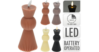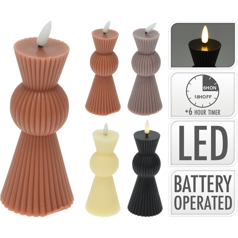 LED Candle D6.5 H14.5cm Ribbed 4 Assorted Colors Incl. 1x CR2032