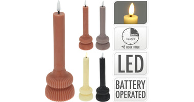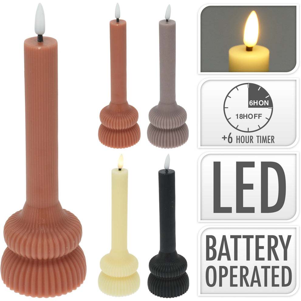 LED CANDLE D7 H20CM RIBBED 4 ASSORTED COLORS EXCL 2X AAA