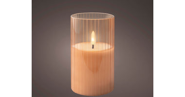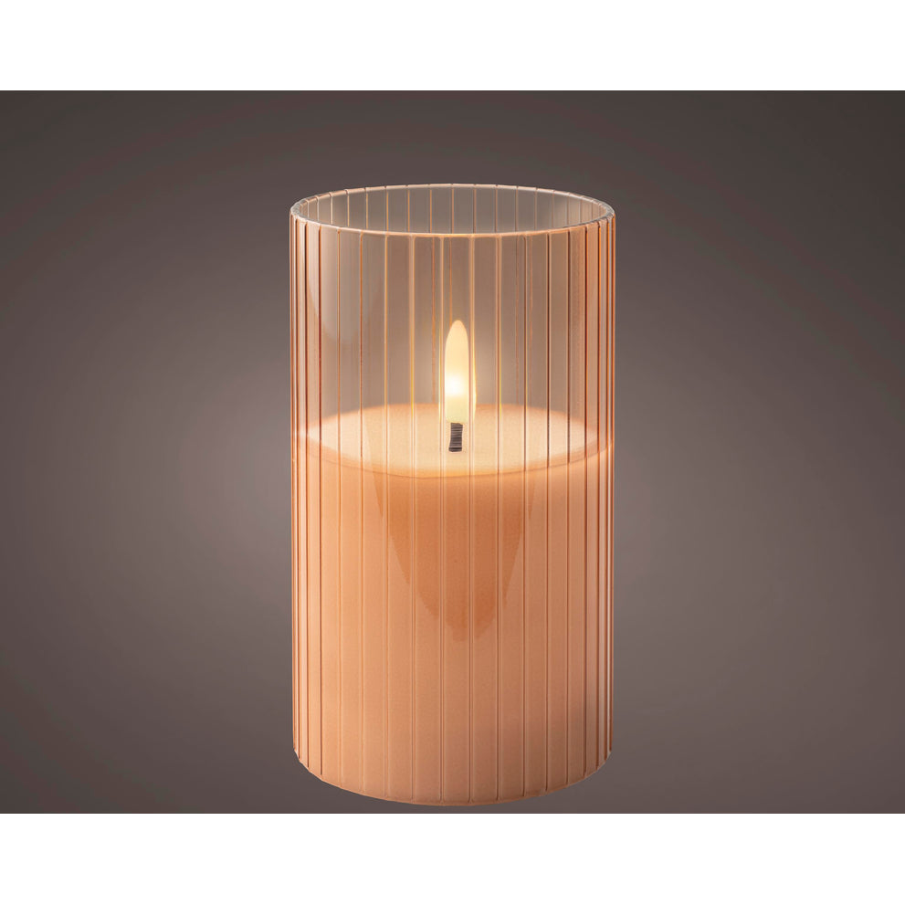 LED candle glass BO inside pink/warm white H12.5 D7.5cm