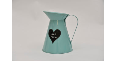 Zinc milk jug, pastel blue, "No. 1 Mum" D14 H17.5cm