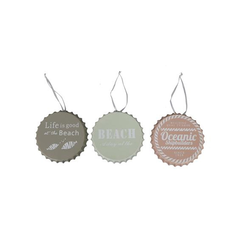 Metal bottlecap pendant 11x11x1.3cm 3pc Mixed