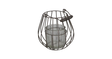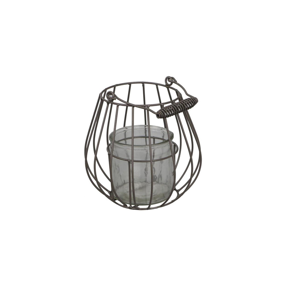Metal wire lantern with glass Ø18x17/26cm Gray