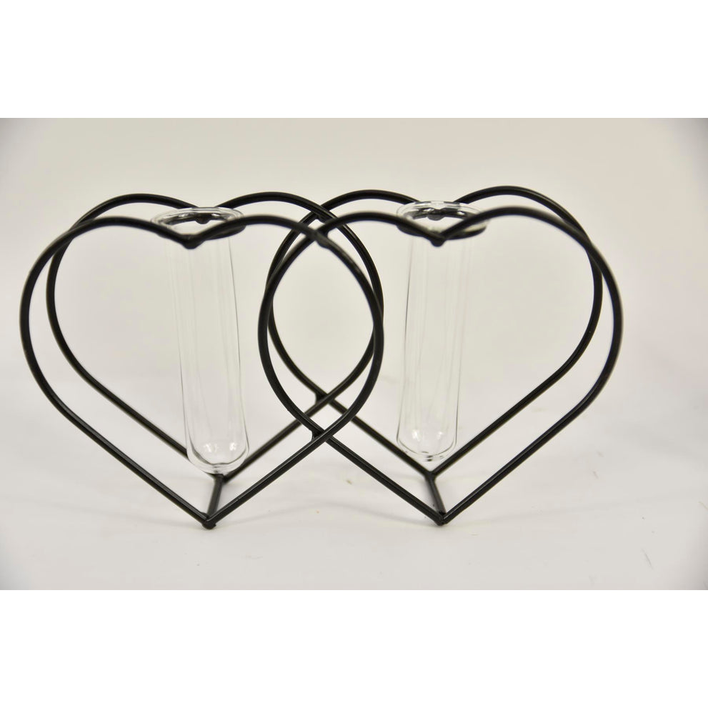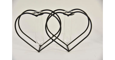 Metal holder heart black with 2 test tubes ''M'' 23x5x13cm