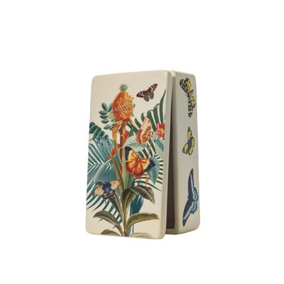 Ceramic storage box with jungle print 17.5x10x6cm