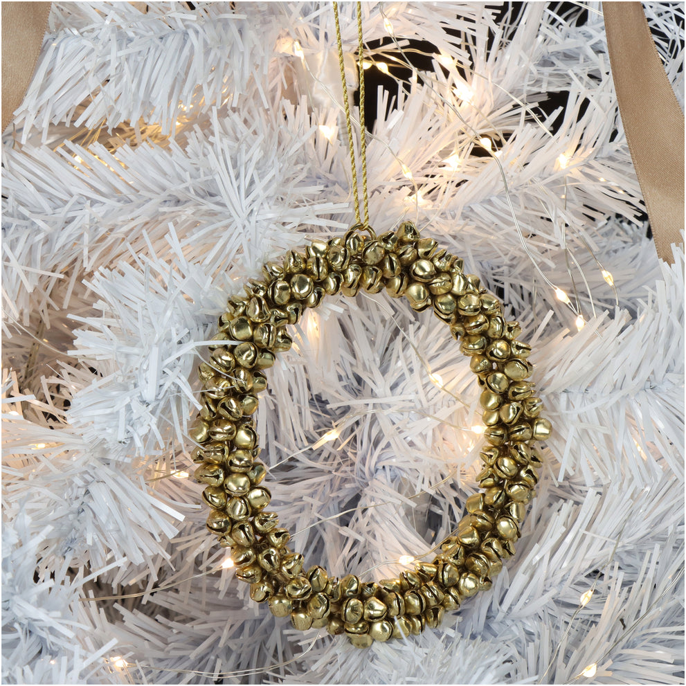 Ornament Bells Wreath Metal Gold 12cm