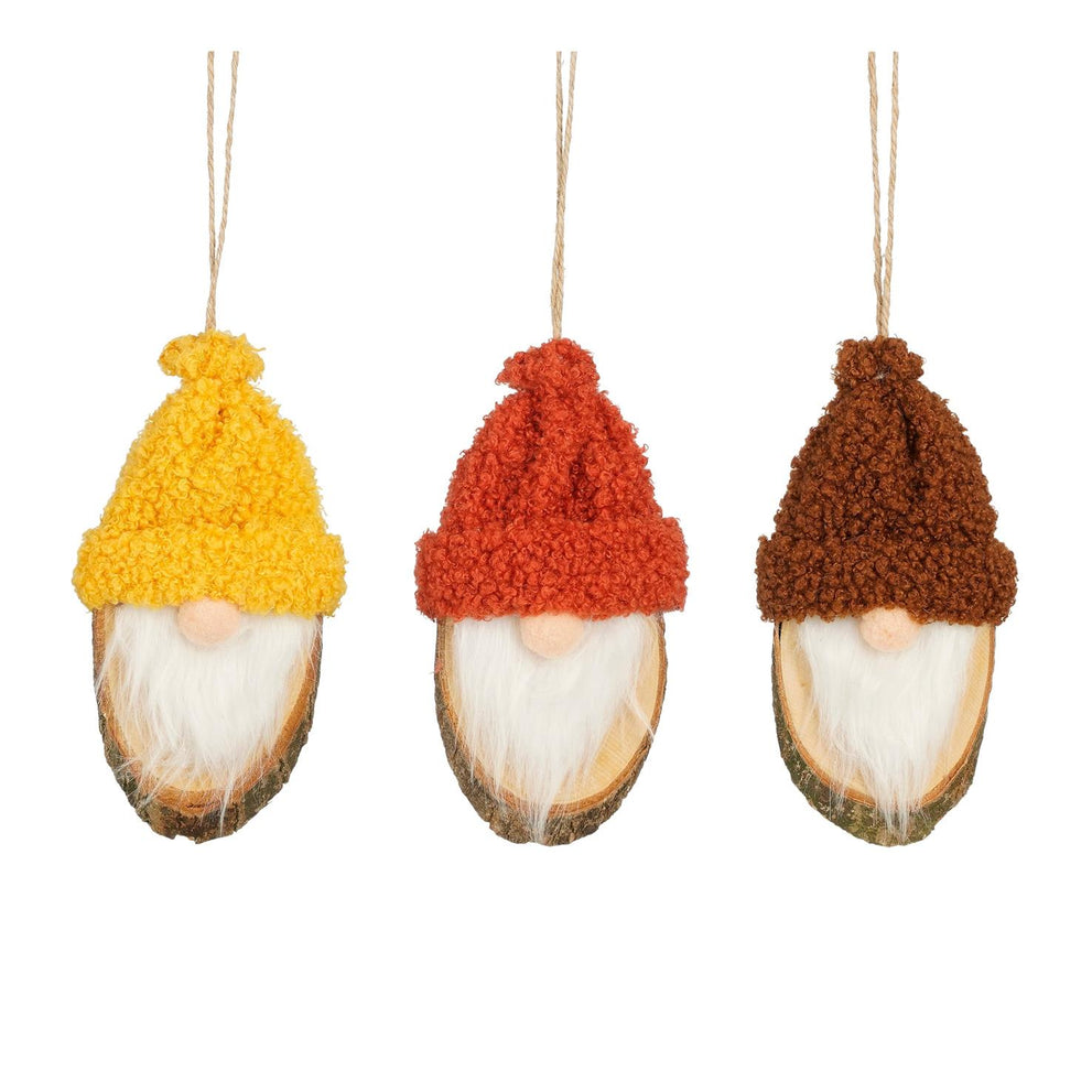 Ornament gnome red yellow brown 3 assorted - l16xb7xh3cm