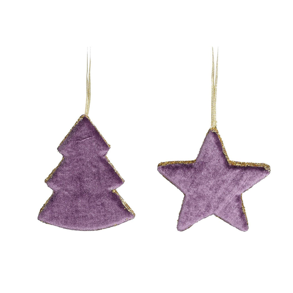 Ornament star tree purple 2 assorted - l12.5xb10.5xh2cm