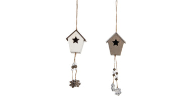 Birdcage ornament white brown 2 assorted - l6xb4xh29cm
