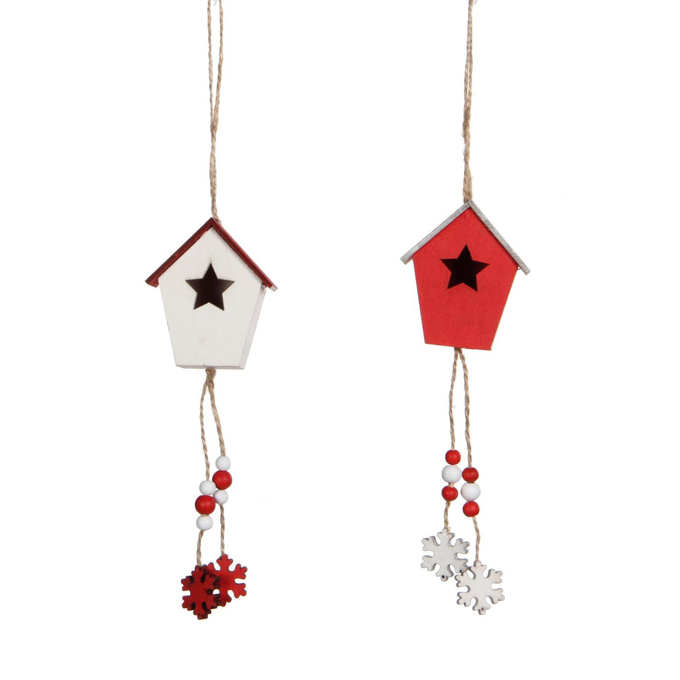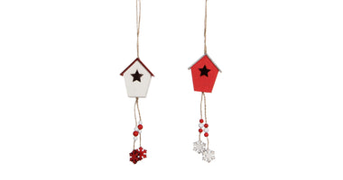 Birdcage ornament white red 2 assorted - l6xb4xh29cm