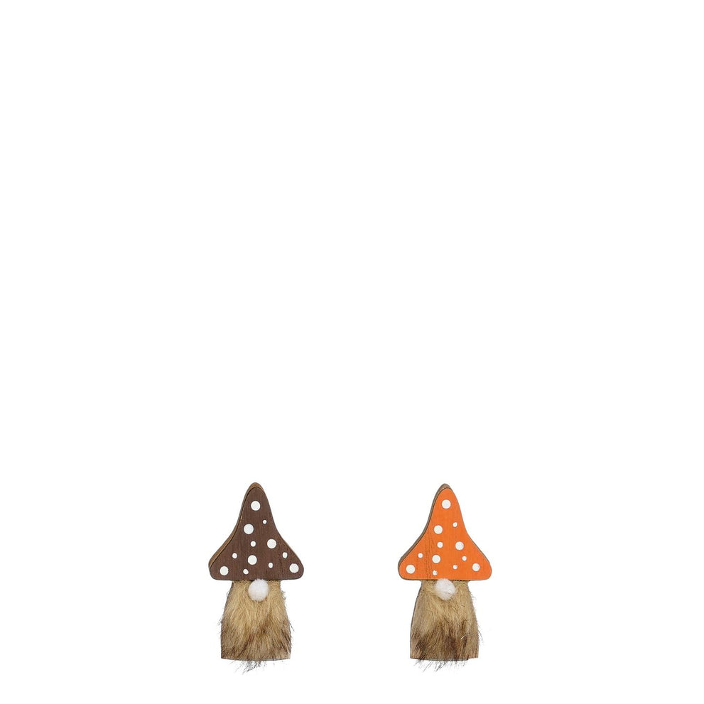 Mushroom gnome brown orange 2 assorted FSC Mix - l6.5xb12xh2cm