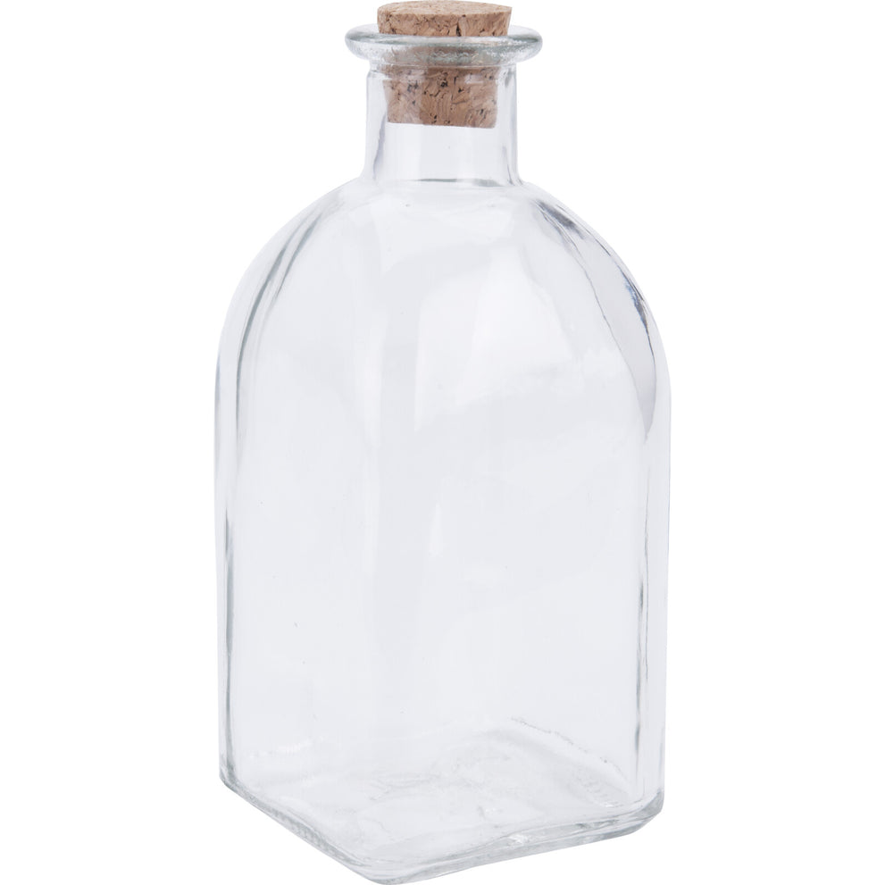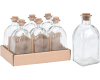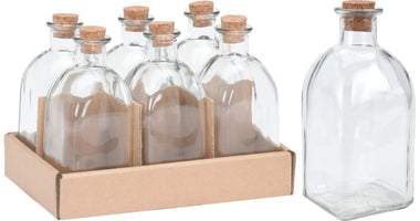 Pack of 6 square glass bottles 250ML with cork 6x6x13.5cm