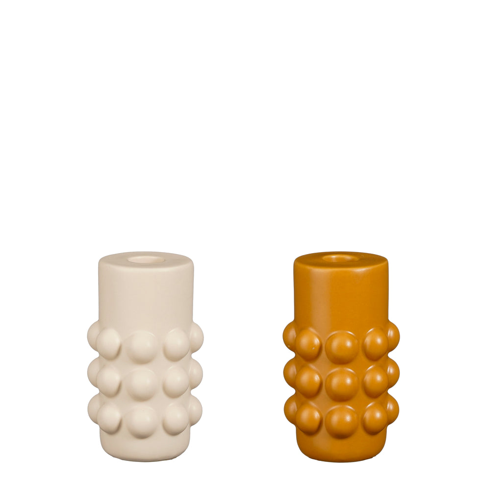 Pam candleholder off white ocher 2 assorted - h13.5xd10.5cm
