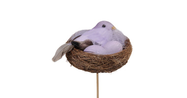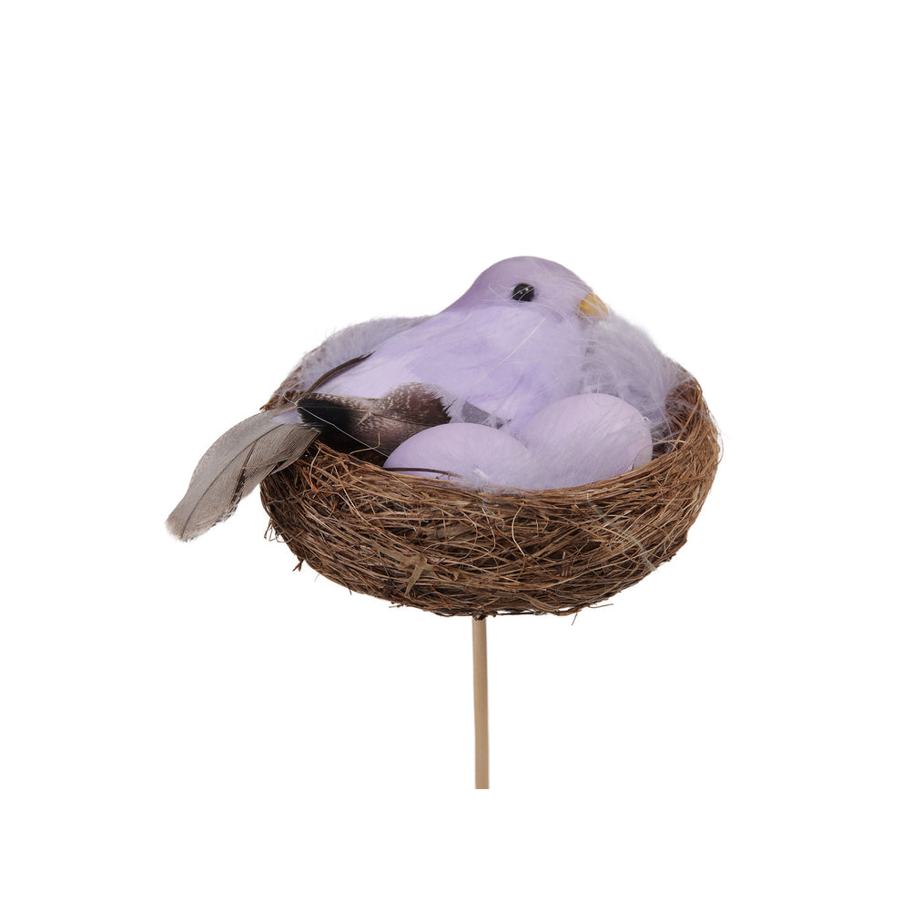pm. 4 nests w/birdlegs (2)/stick lilac Ø 8 cm