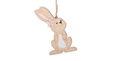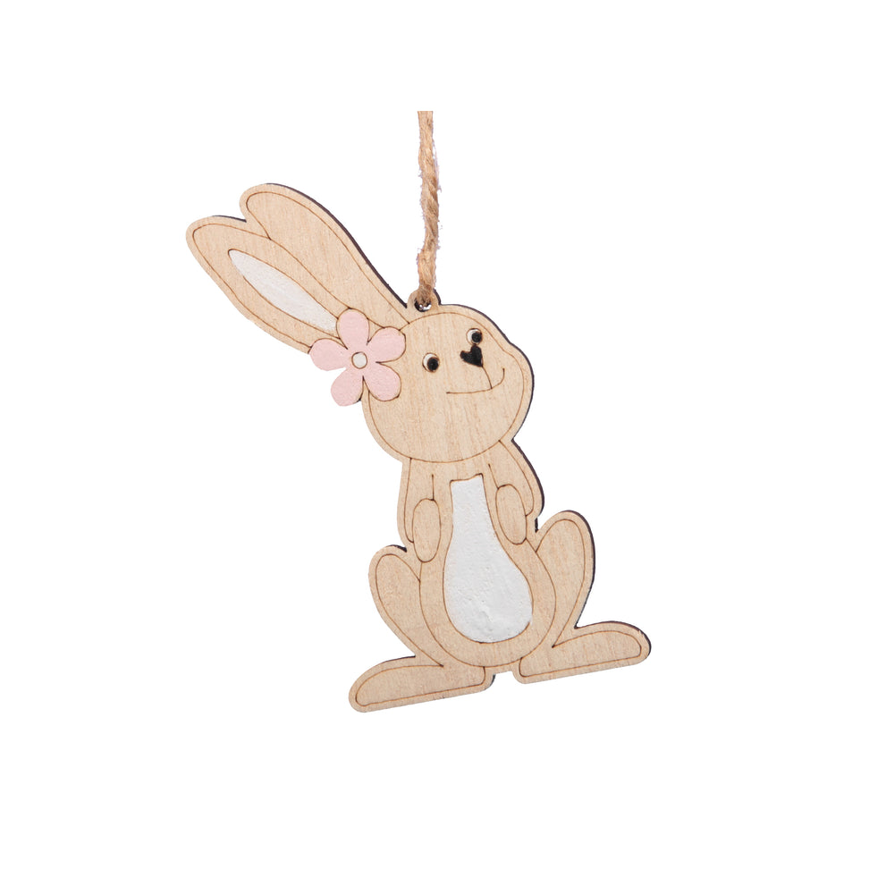 pm. 4 wooden rabbits/hanging natural/pink 6x11 cm