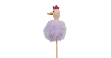 pm. 6 wood chickens/stick lilac 4x6 cm
