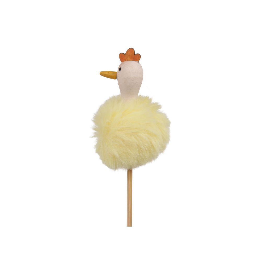pm. 6 wood chickens/stick yellow 4x6 cm
