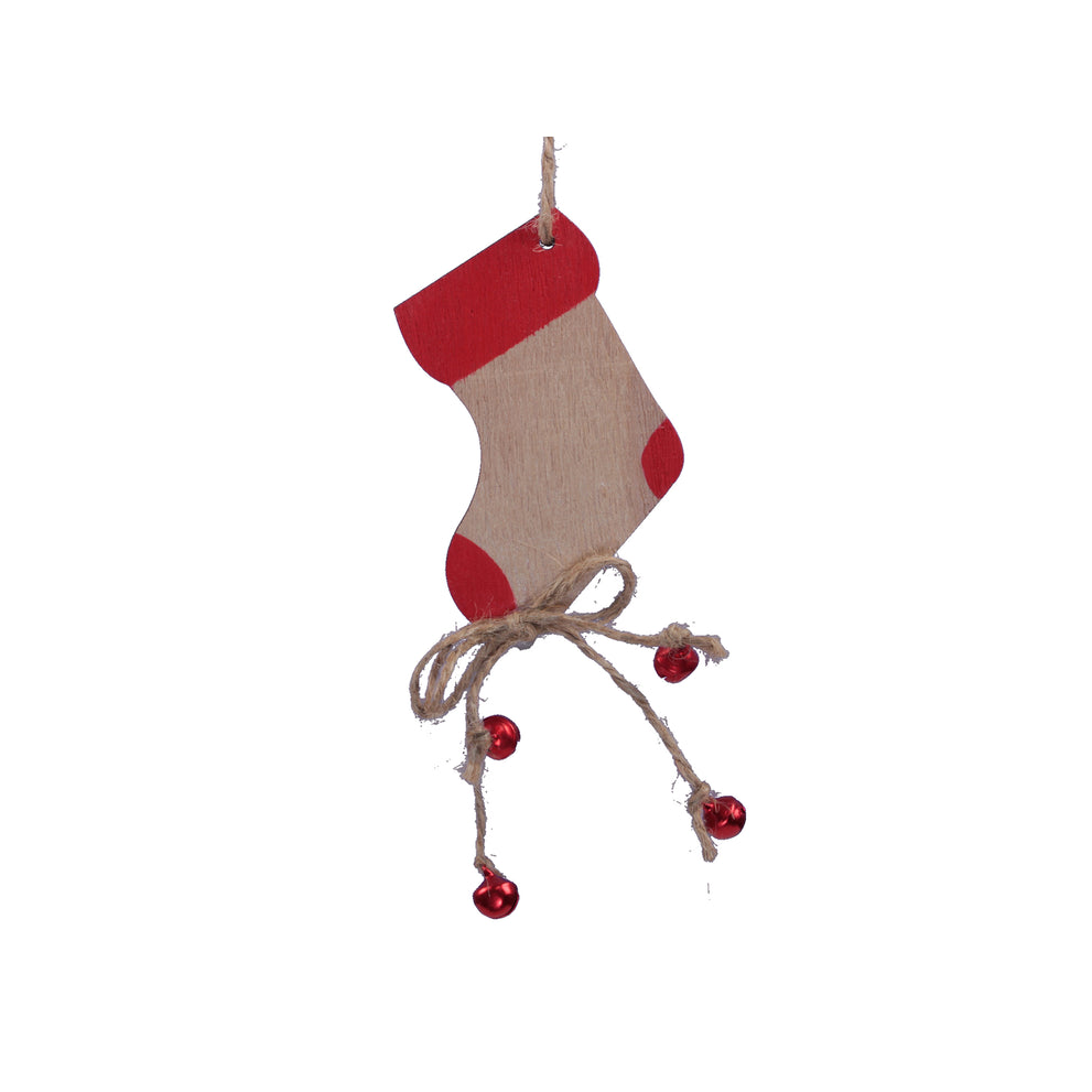 pm. 8 wooden socks/hanging natural/red 9x5.7 cm