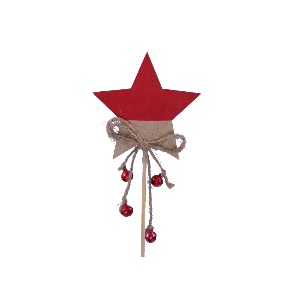 pm. 8 wooden stars/stick natural/red 8x8 cm