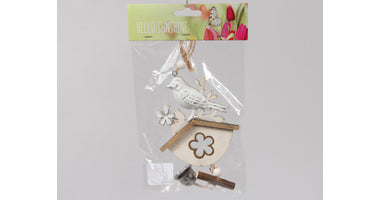 pbh. 1 wooden pendant/bird white 18x9 cm