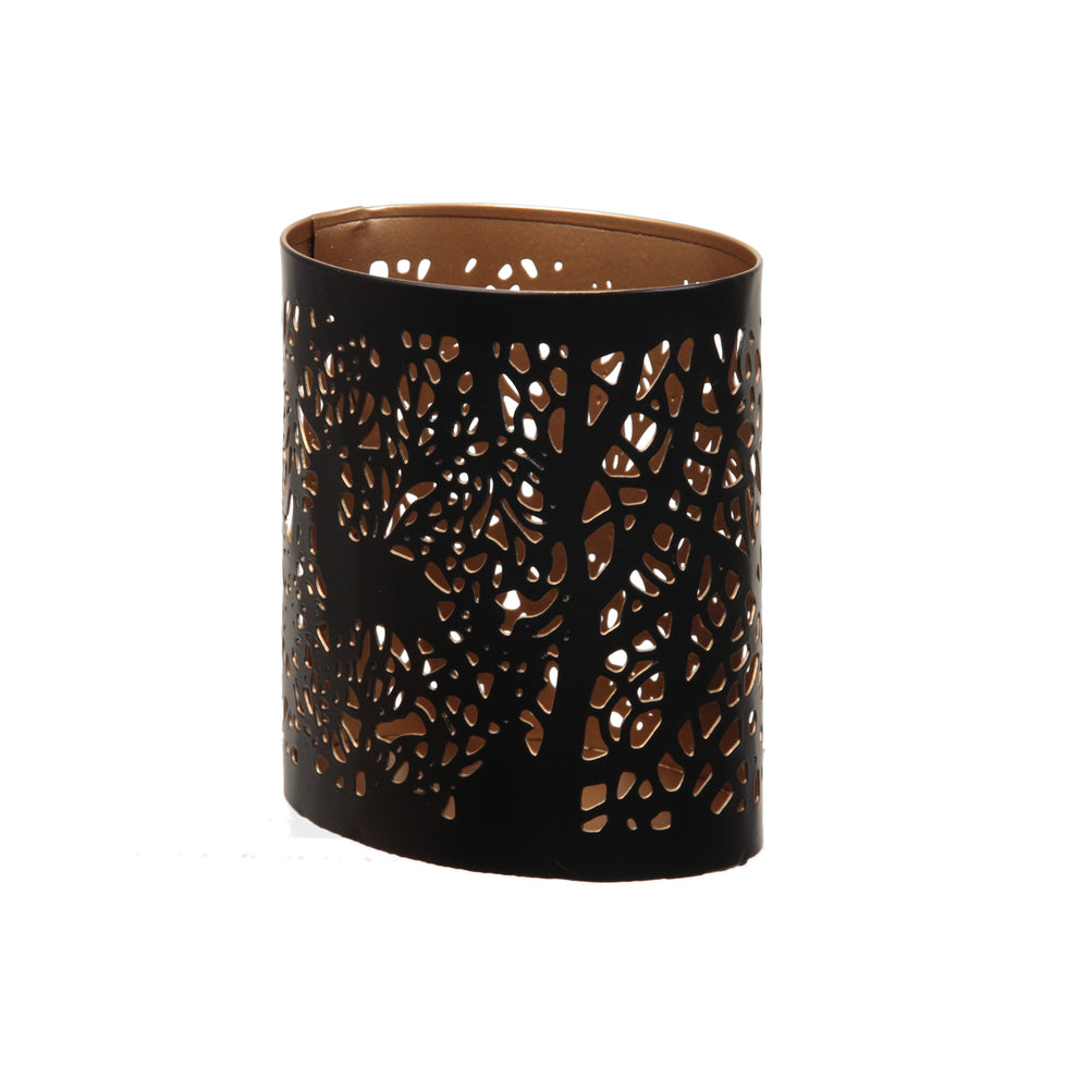 pc. 1 metal candleholder ''tree'' oval black/gold 9x6x10cm