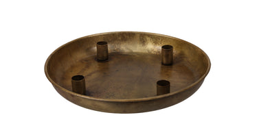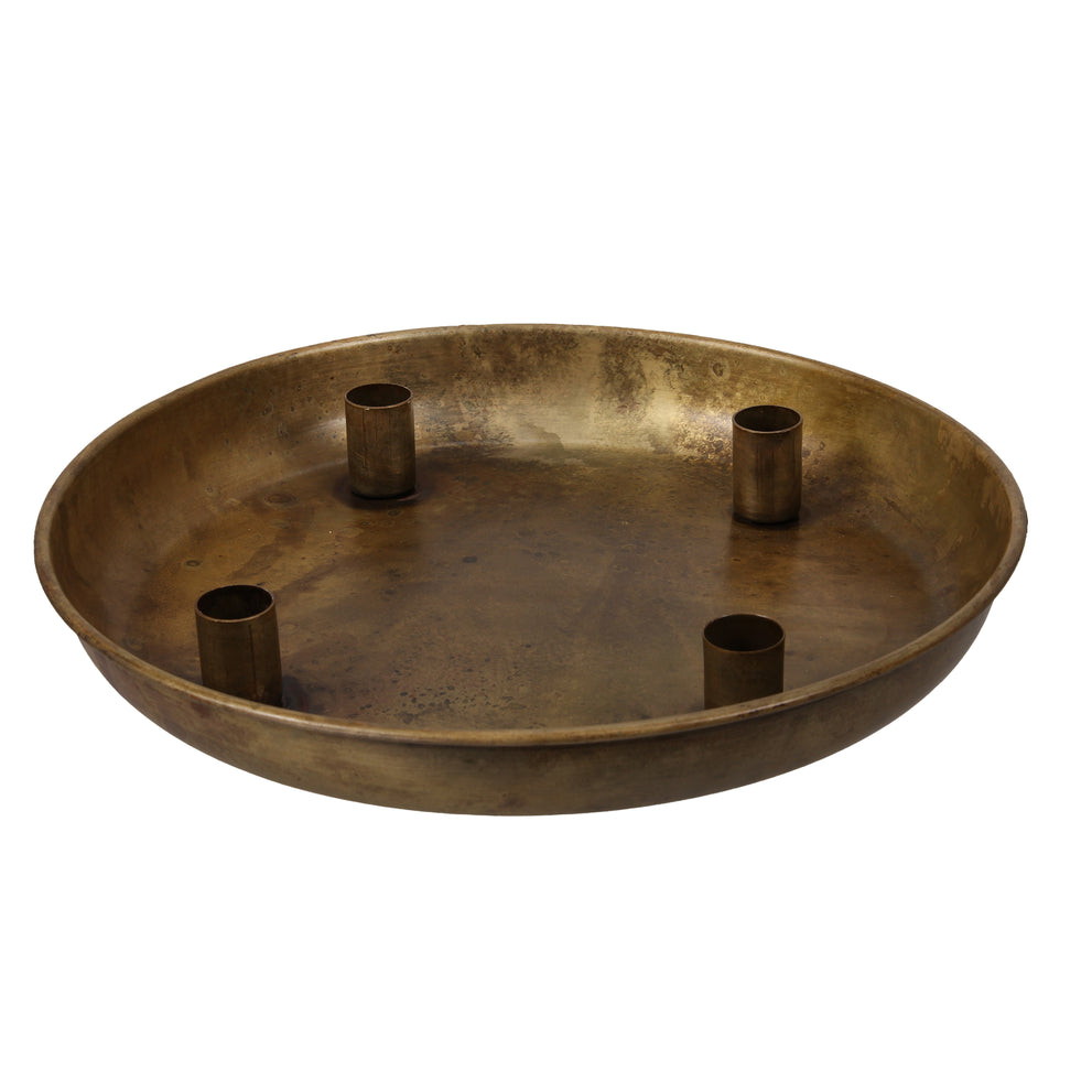 pc. 1 metal plate w/candle holder old brass Ø30x4cm