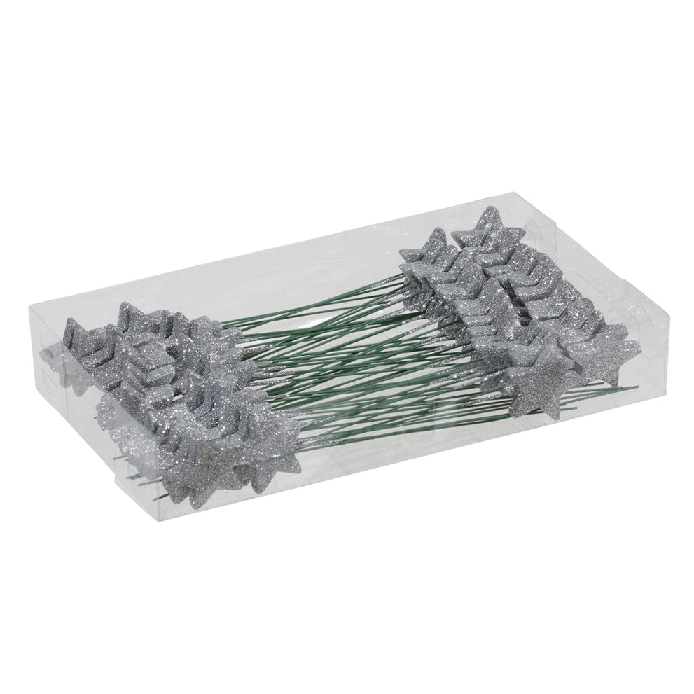 PET 60 glitter stars/wire silver 4 cm