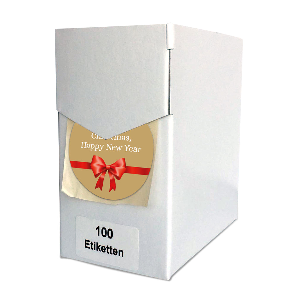 Roll of 100 stickers - Merry Christmas, Happy New Year - Gold