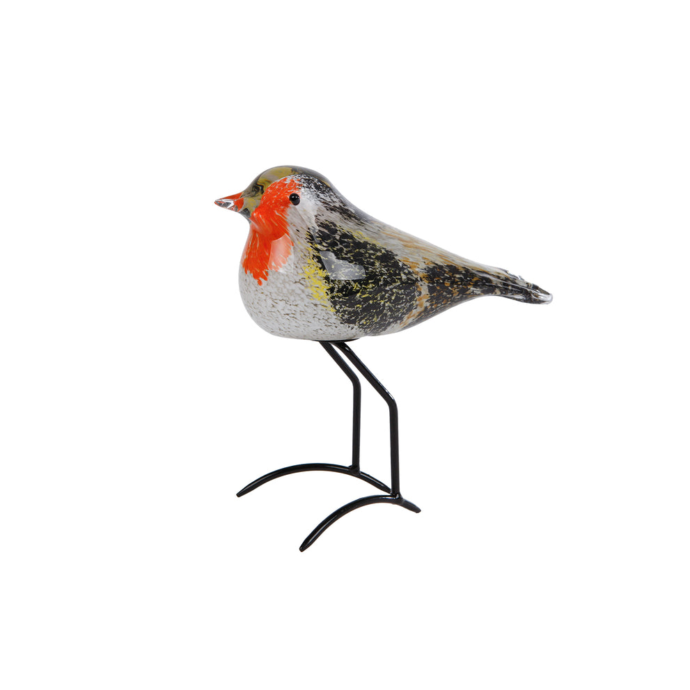 Sculpture "Robin" white/black glass 17x8x15.5cm