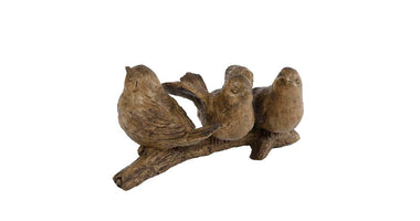 Sculpture "Birds on branch 3" S brown polystone 14x7x7cm
