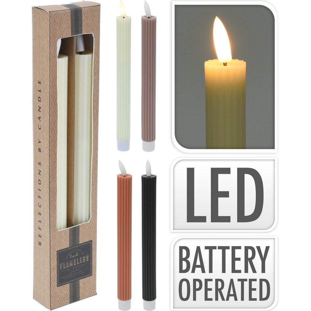 SET OF 2 LED CANDLES D2.2 H24CM 4 ASSORTED COLORS EXCL. 2X AAA BATTERIES