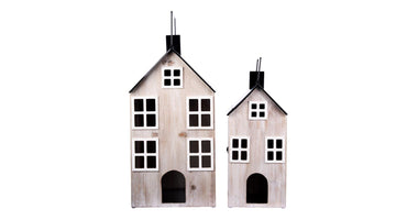 Set of 2 Wooden House Lanterns 34x33x66cm