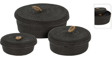 SET/3 BASKET PAPER BLACK WITH LID D26/22/17 H9/8/7CM