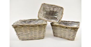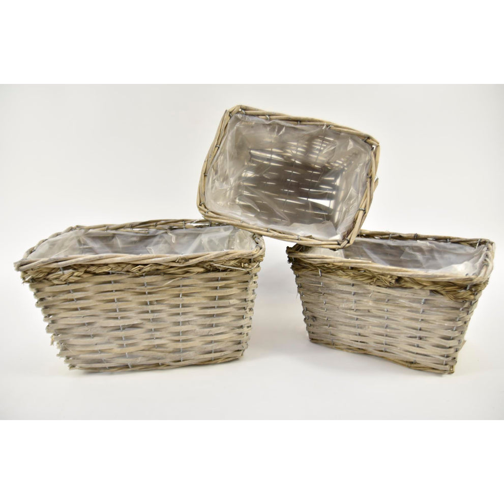Set of 3 rectangular seagrass/reed baskets, 32x24x18cm, grey-wash