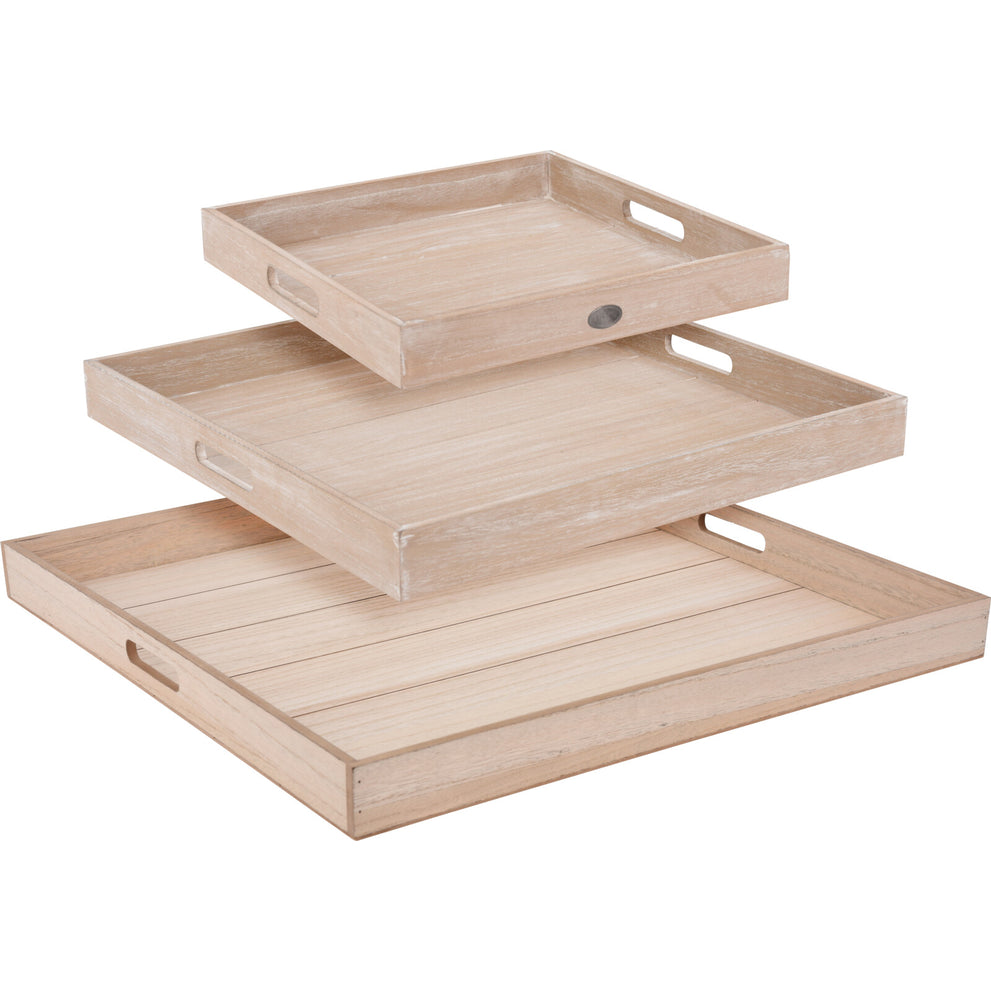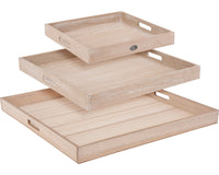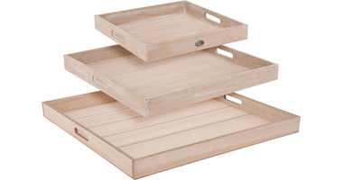 SET OF 3 WOODEN TRAY 'LIVING' 58x58x4CM