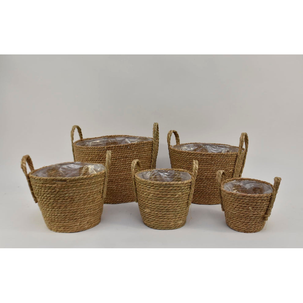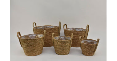 Set of 5 seagrass baskets with ears, natural, D34 H31cm
