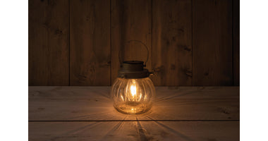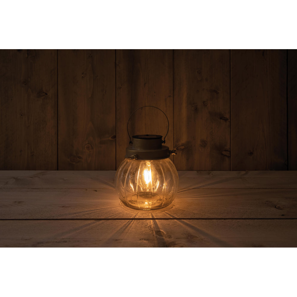 Solar glass jar round with retro lamp gold 15x15cm